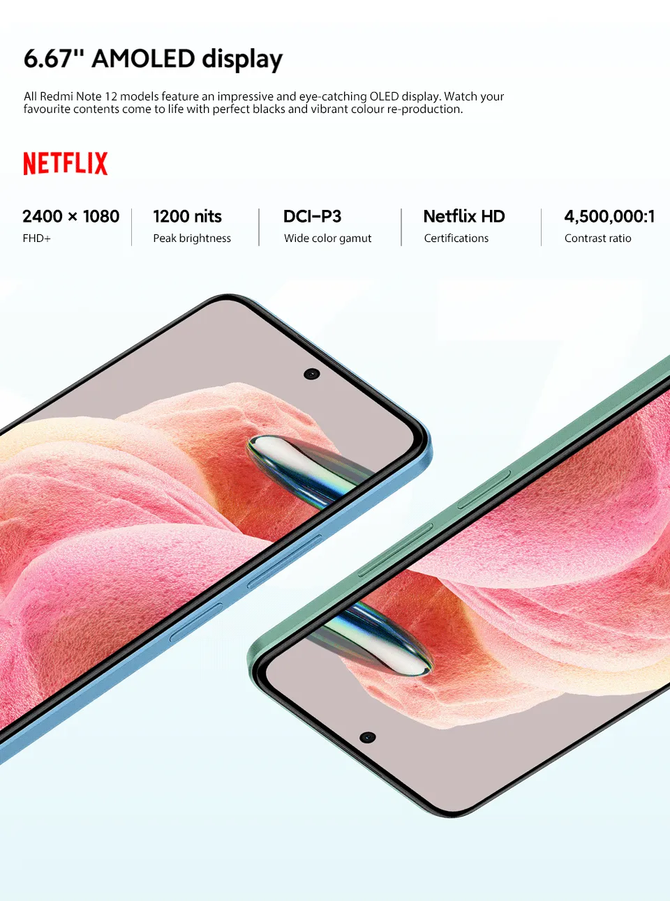 小米红米Note 12 4G 128GB Rom+6GB Ram/全球版/1年小米本地保修(免费:钢化玻璃+后盖)